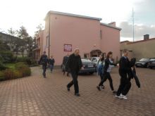 Dokładnie o godzinie 10:00 po usłyszeniu sygnału alarmowego instruktorzy wraz z podopiecznymi oraz pozostałymi pracownikami przedostali się drogami ewakuacyjnymi do punktu zbiórki.