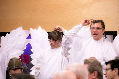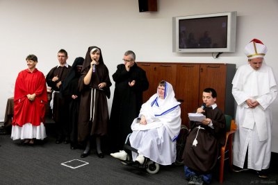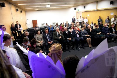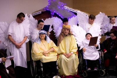 Spotkanie rozpoczęło się oficjalnym przywitaniem gości przez Panią Prezes Jolantę Bartczak oraz podziękowaniem za współpracę. Główni bohaterowie spotkania czyli Uczestnicy Warsztatu Terapii Zajęciowej zaprezentowali się w adwentowo-rekolekcyjnym przedstawieniu pt. „W podążaniu do świętości” a następnie wręczyli przybyłym własnoręcznie przygotowane, zdobione pierniki.