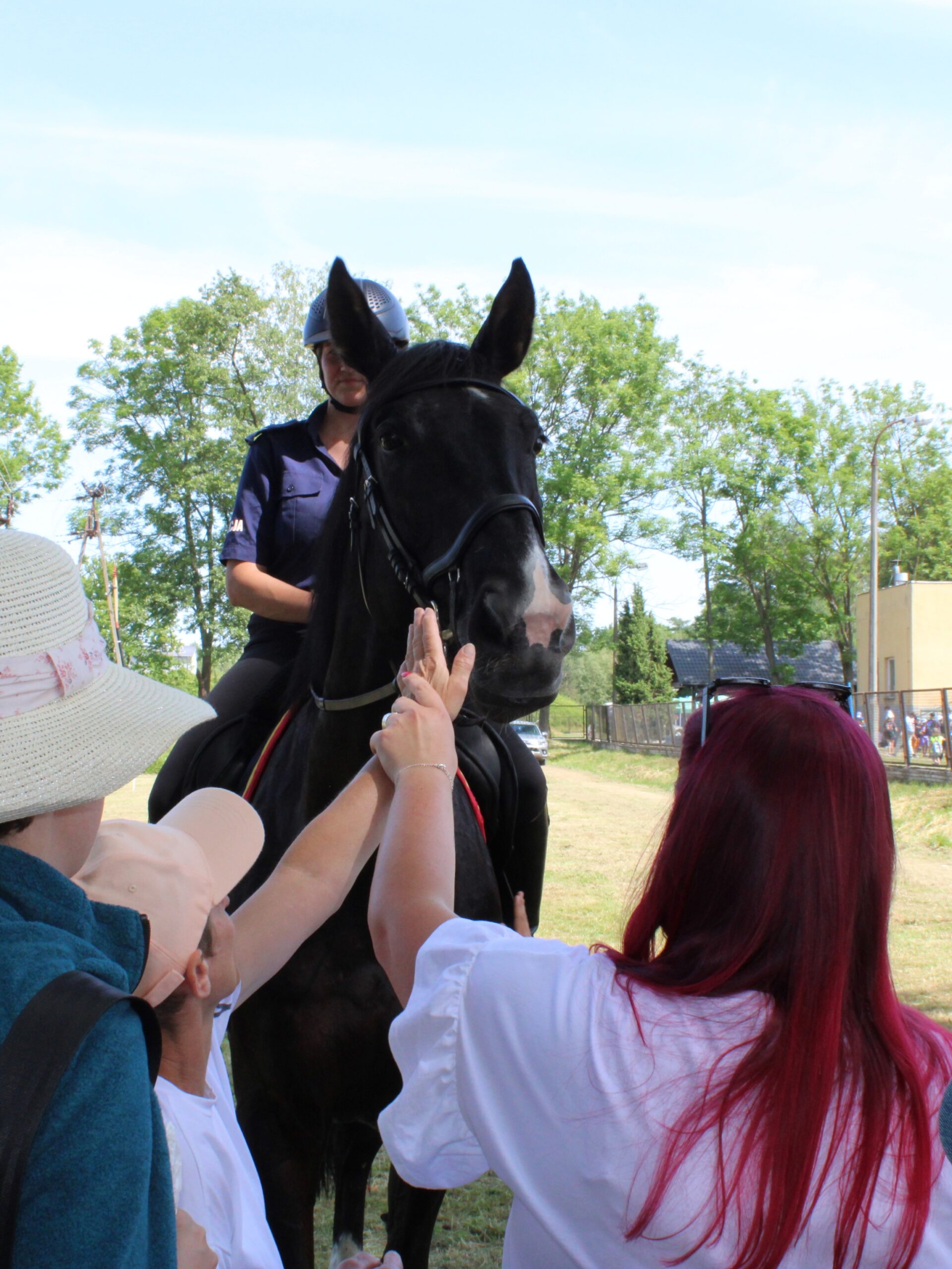 Największą atrakcją dla uczestników ponownie była możliwość zobaczenia z bliska policyjnego śmigłowca, choć niemniejszym zainteresowaniem cieszyły się pokazy sprawności użytkowej psów służbowych aktualnie przebywających na kursach oraz pokaz ujeżdżania koni służbowych przez funkcjonariuszy z Komendy Stołecznej Policji czy możliwość oddania strzałów profesjonalną choć nienabitą bronią. Mieliśmy też okazję na własne oczy zobaczyć akcję gaśniczo-ratunkową, jaką przeprowadza się w przypadku potencjalnych ofiar wypadku samochodowego i jego pożaru. Dzień pełen przygód to mało powiedziane! Co więcej – grupa uczestników pod opieką terapeutów ponownie wybrała się na miejsce pociągiem, a po zakończeniu imprezy wrócili koleją do Warki.