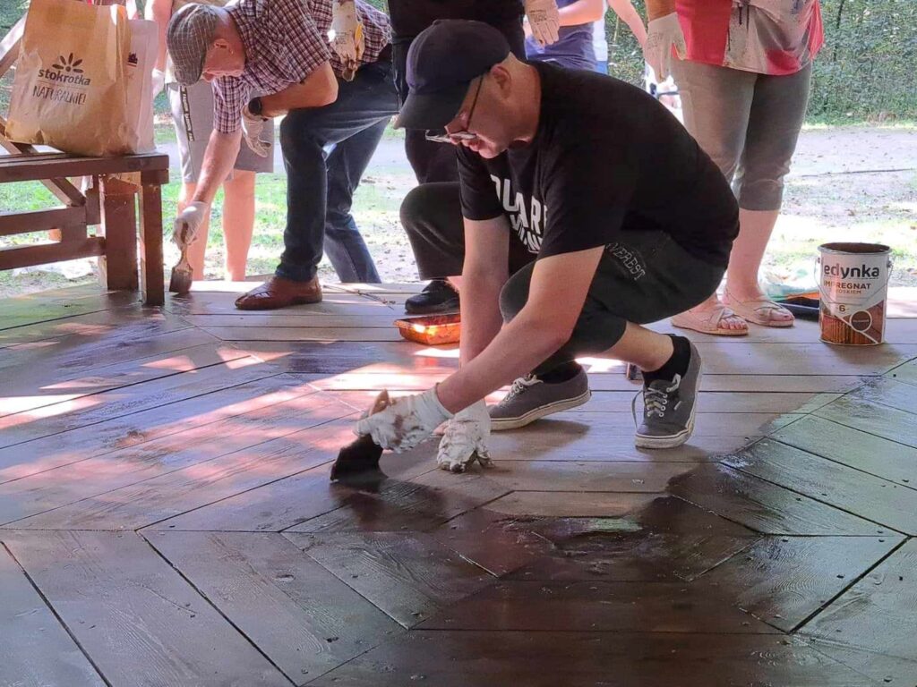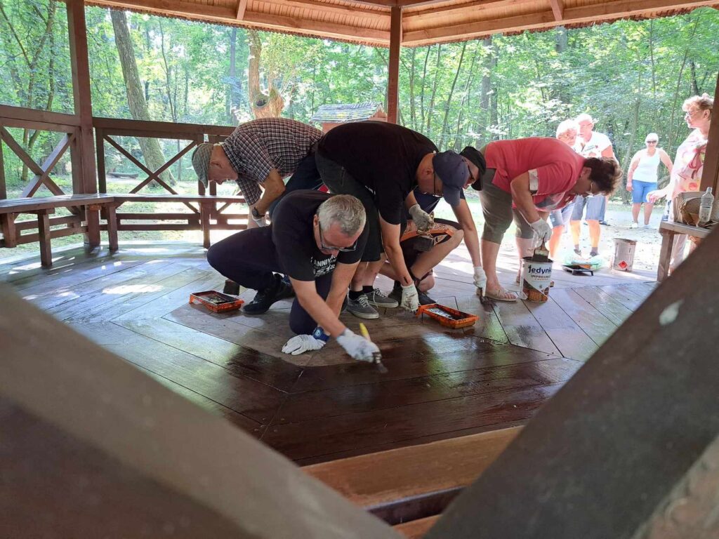 „Złoty Wiek i Tęcza dbają o zielone płuca Warki” – tak brzmi tytuł projektu organizowanego przez warecki Klub Seniora, w którym z ogromną przyjemnością bierzemy udział. Założeniem dzisiejszego spotkania w parku przy Muzeum im. Kazimierza Pułaskiego w Warce była konserwacja i malowanie altanek. Cieszymy się, że mogliśmy służyć pomocą w tak szczytnym celu.