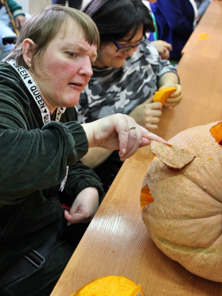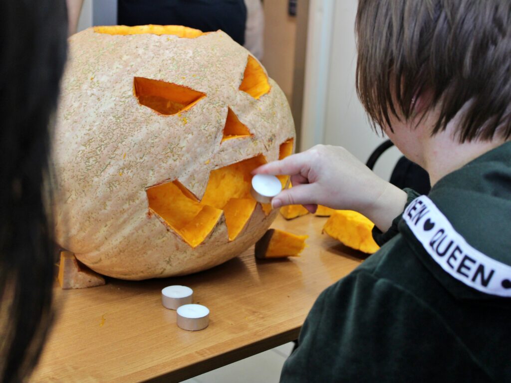 Z końcem października nie mogło zabraknąć halloweenowego akcentu! Coroczne zajęcia z wycinaniem dyni już na stałe wpisały się w nasz kalendarz, a z roku na rok nabieramy coraz więcej wprawy w carvingu – bo tak właśnie nazywa się sztuka rzeźbienia w owocach. Zajęcia są o tyle kreatywne, że łączą zarówno umiejętności plastyczne czy wyobraźni przestrzennej, ale także ćwiczą zmysł dotyku czy węchu. Było super!