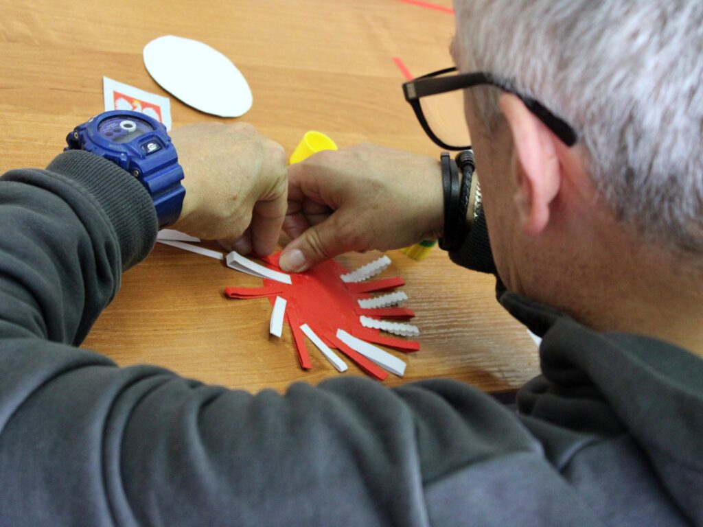 Była pogadanka historyczna, wspólne rozwiązywanie krzyżówki oraz quiz tematyczny. Nie mogliśmy oczywiście zapomnieć o wykonaniu własnych kotylionów i śpiewaniu pieśni patriotycznych.